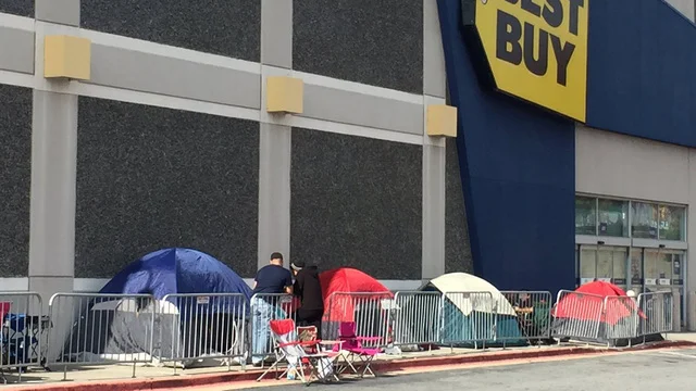 Les clients font la queue devant Best Buy on Black Friday à 5 heures du matin pour décrocher les meilleures offres.